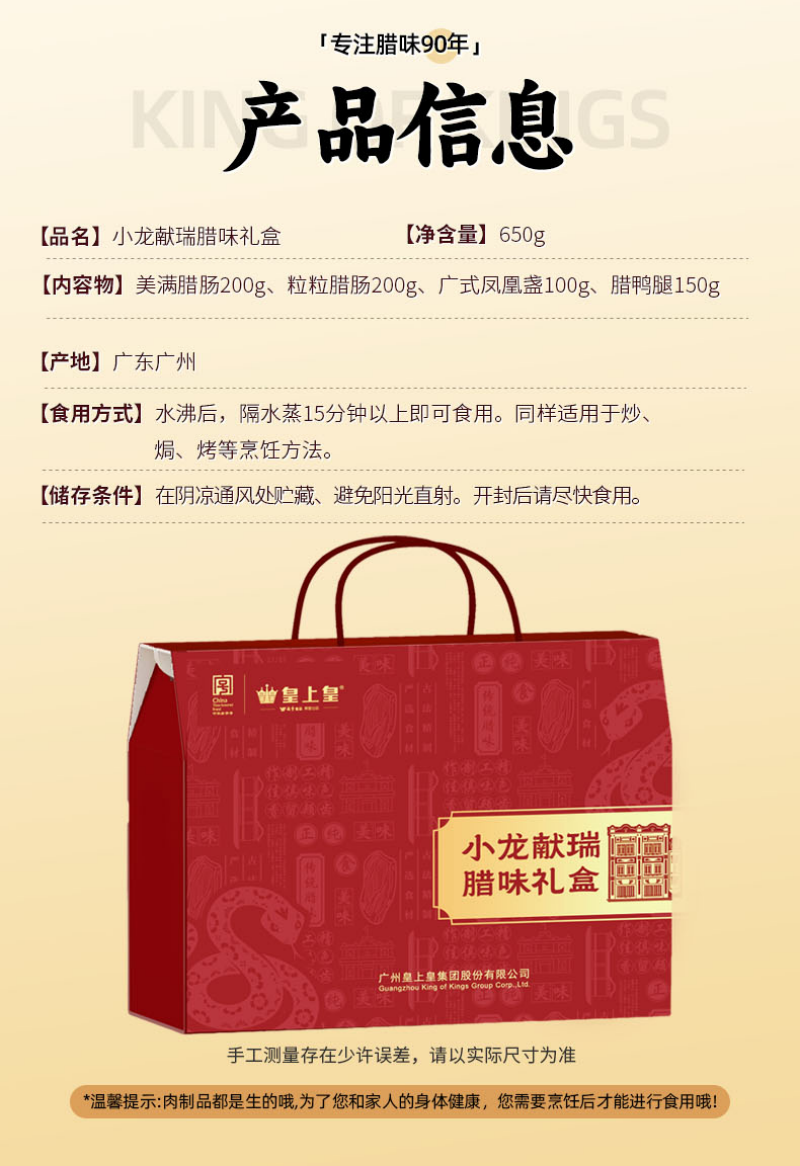 商品名称:皇上皇小龙献瑞 腊味礼盒650g(单位:盒)