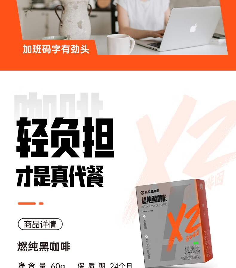 商品名称:暴肌独角兽燃纯黑咖啡 60g*3盒+送胖胖杯(单位:组)