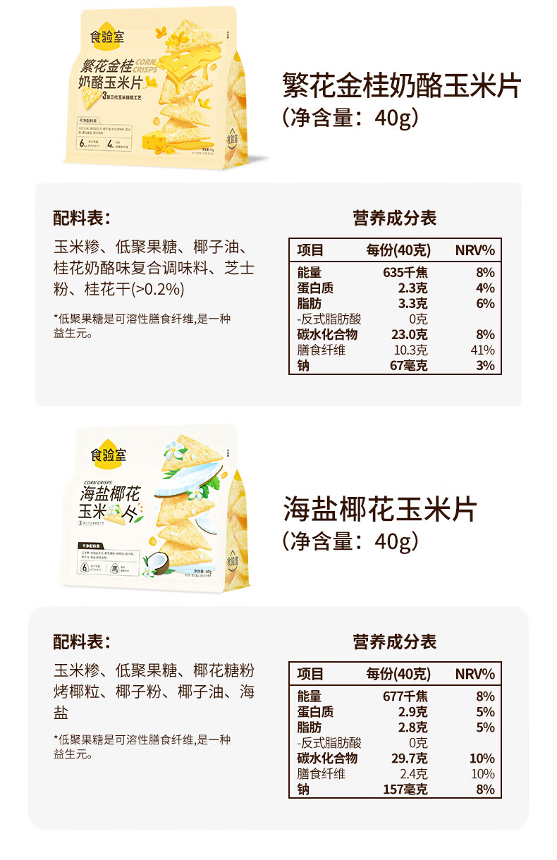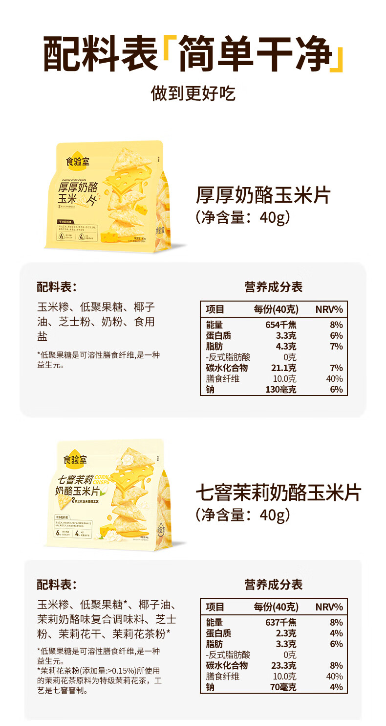 商品名称:食验室奶酪玉米片组合口味立袋装40g*4袋(单位:组)