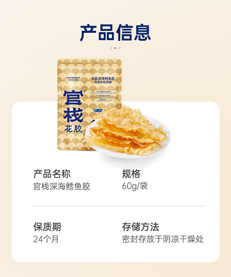 商品名称:官栈深海鳕鱼胶60g/袋(单位:袋)