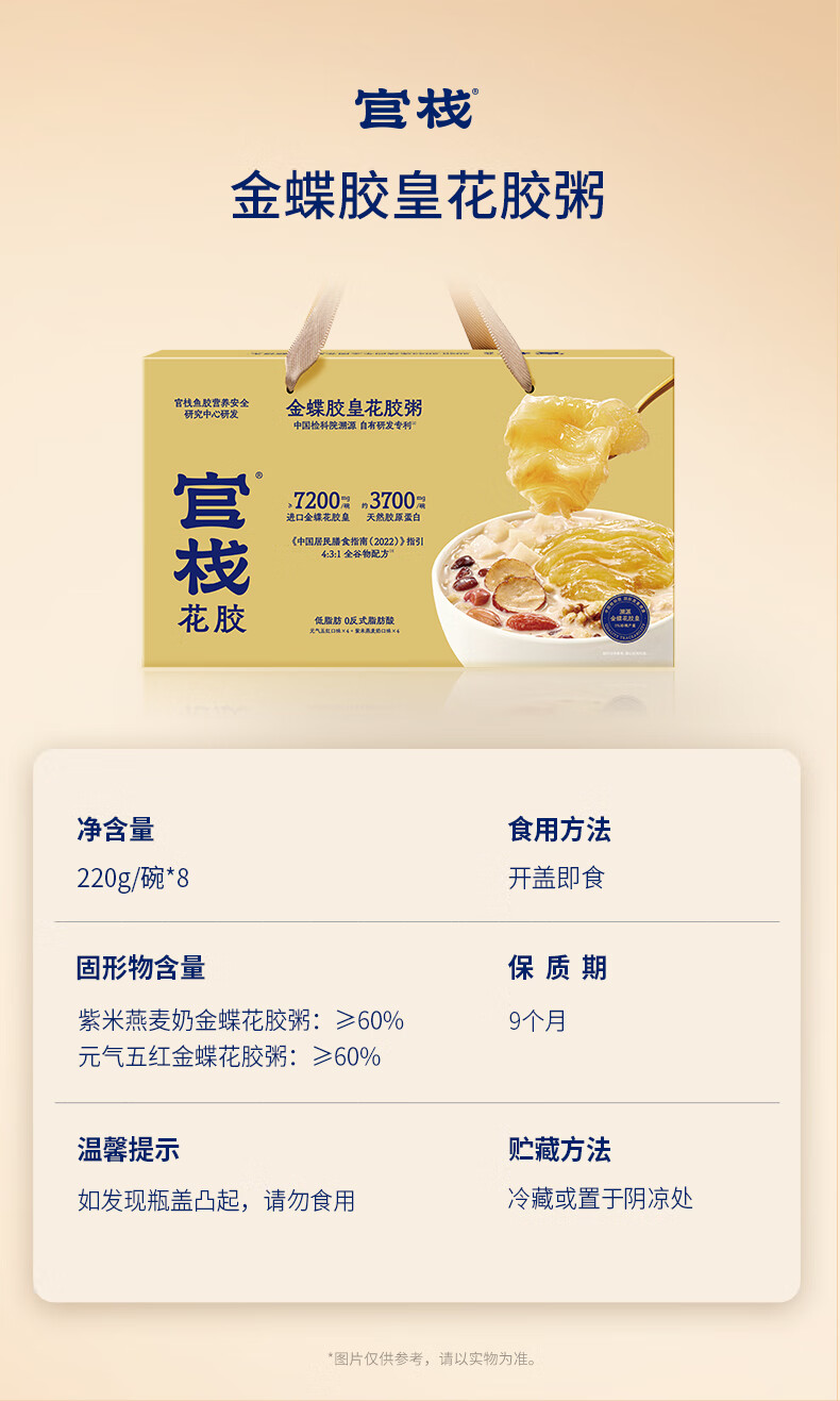 商品名称:官栈金蝶胶皇花胶粥礼盒220g*8碗(单位:盒)