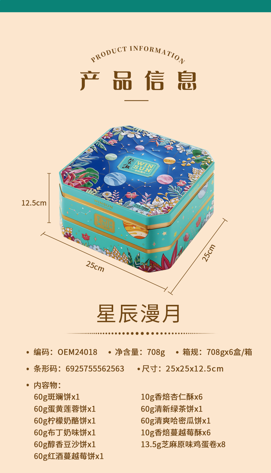 商品名称:荣诚 星辰漫月 708g 月饼礼盒(单位:盒)