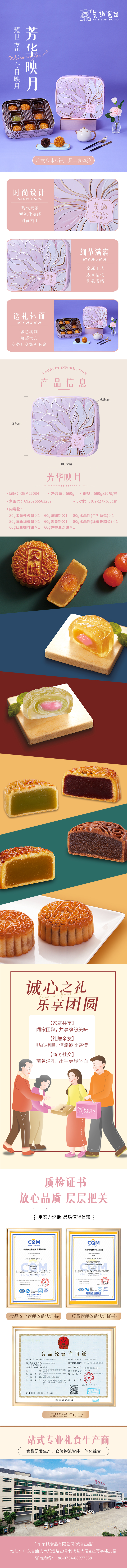 商品名称:荣诚 芳华映月礼盒 560g 月饼礼盒(单位:盒)