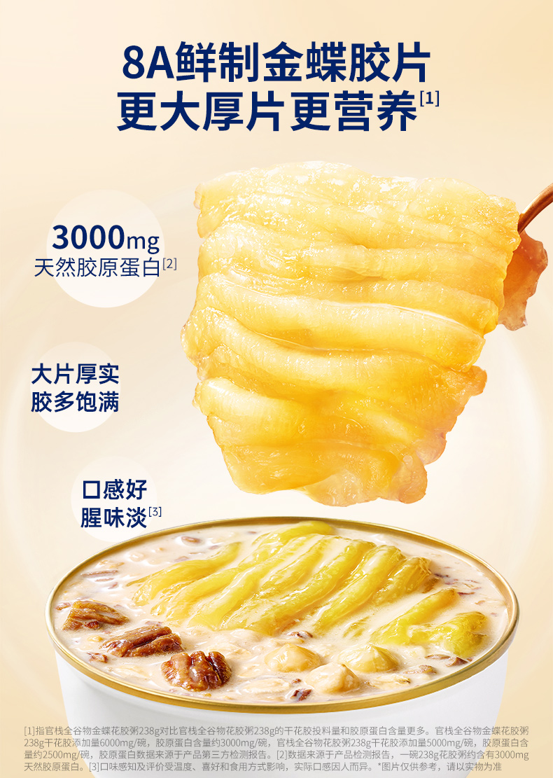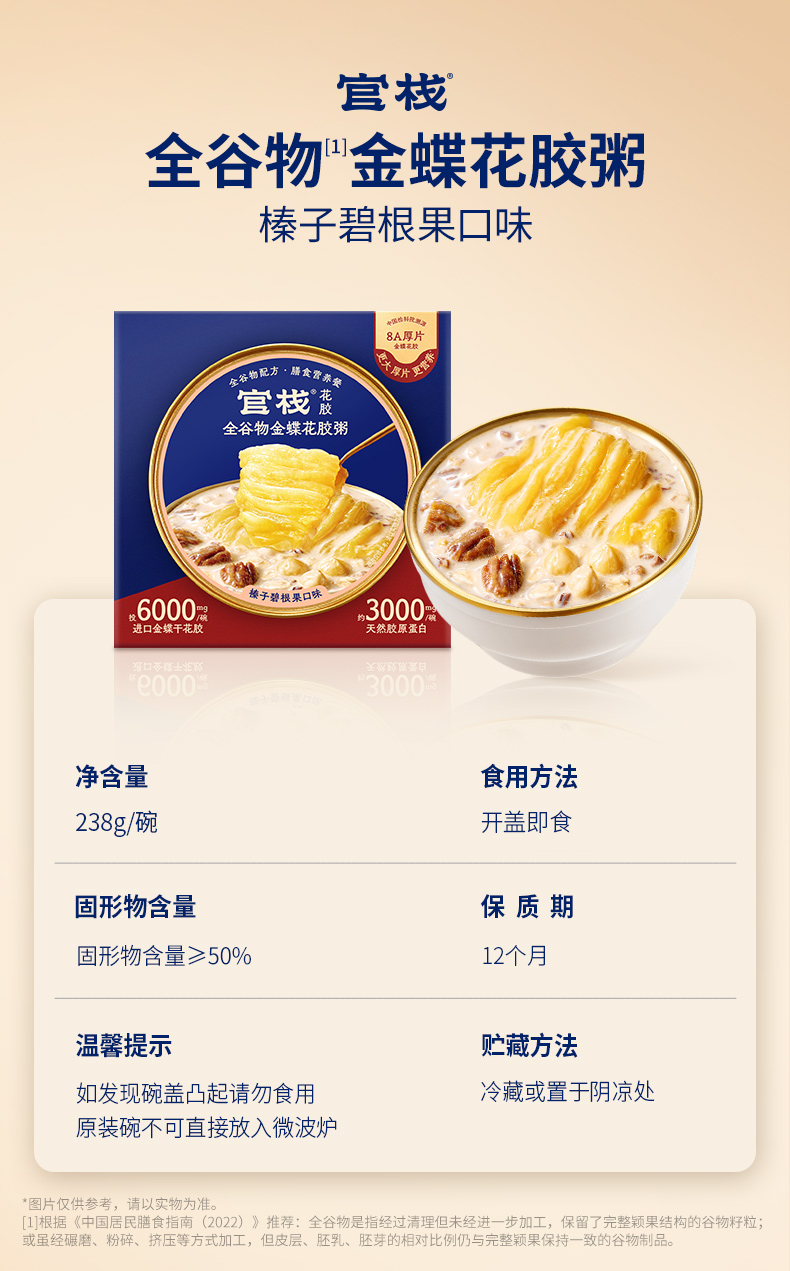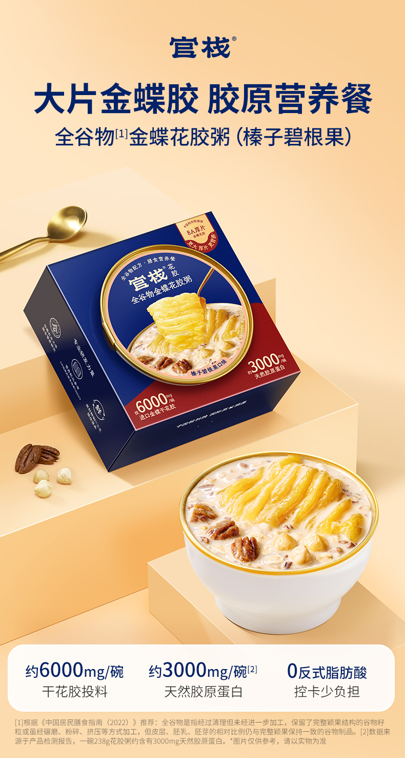 商品名称:官栈金蝶胶榛子碧根果花胶粥238g*3碗(含礼袋)(单位:盒)