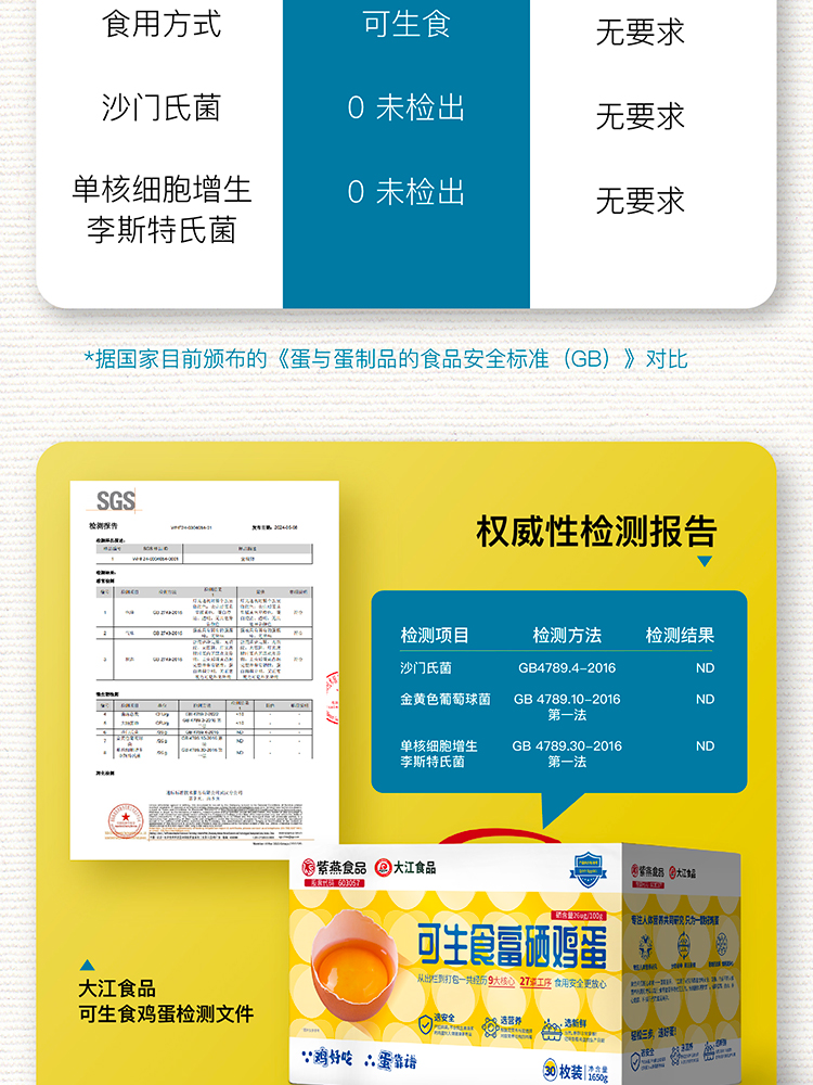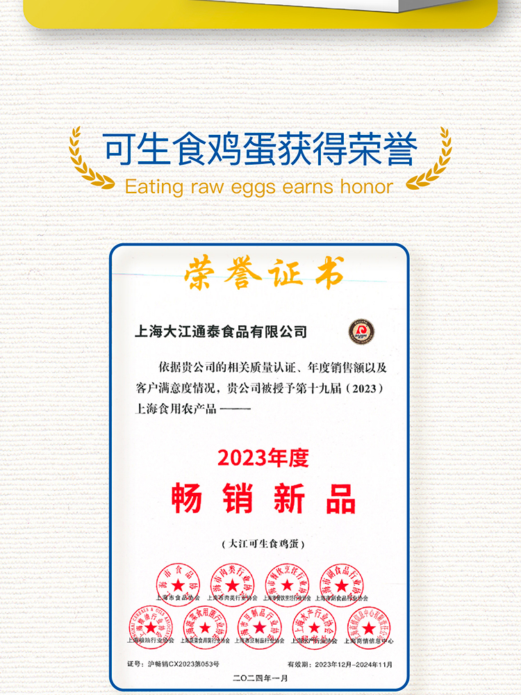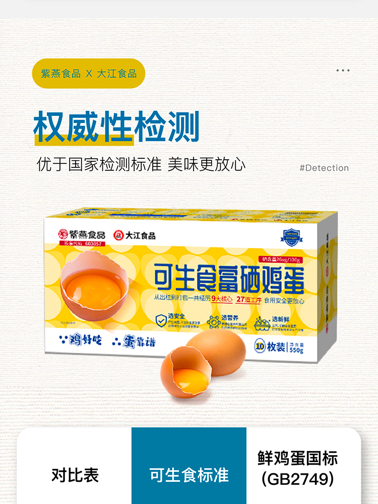 商品名称:紫燕&大江 可生食富硒鸡蛋(10枚) 55g*10g (单位:盒)