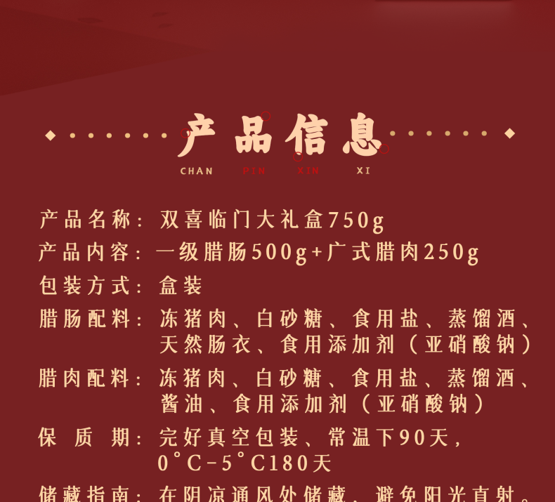 商品名称:金桑叶双喜临门腊味礼盒750g(单位:盒)