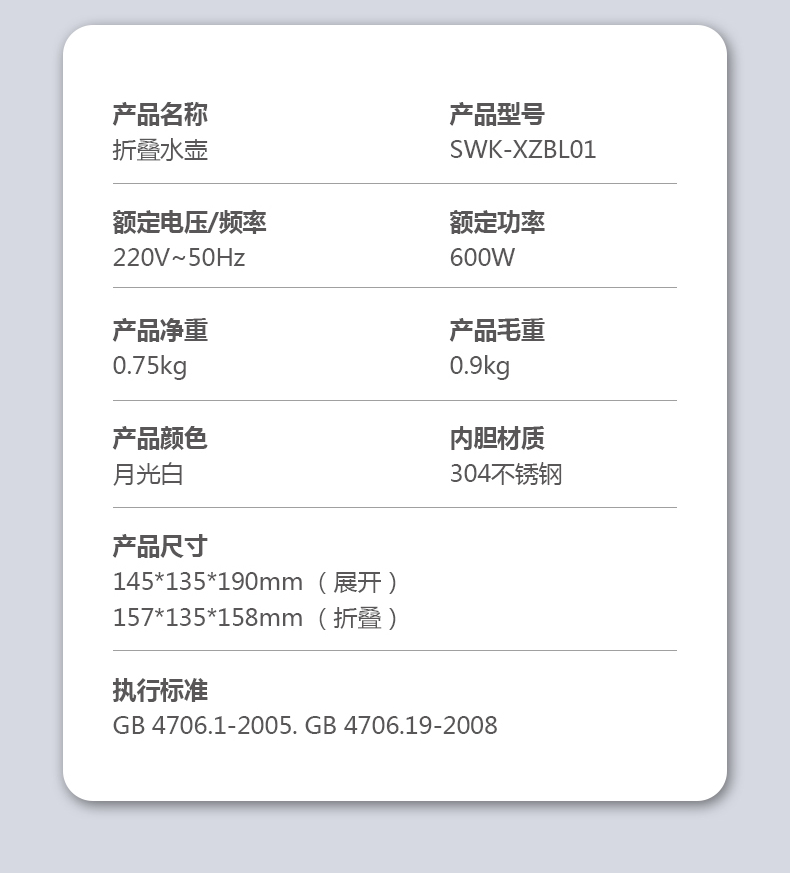 商品名称:施耐德 折叠水壶 SWK-XZBL01 (单位:盒)