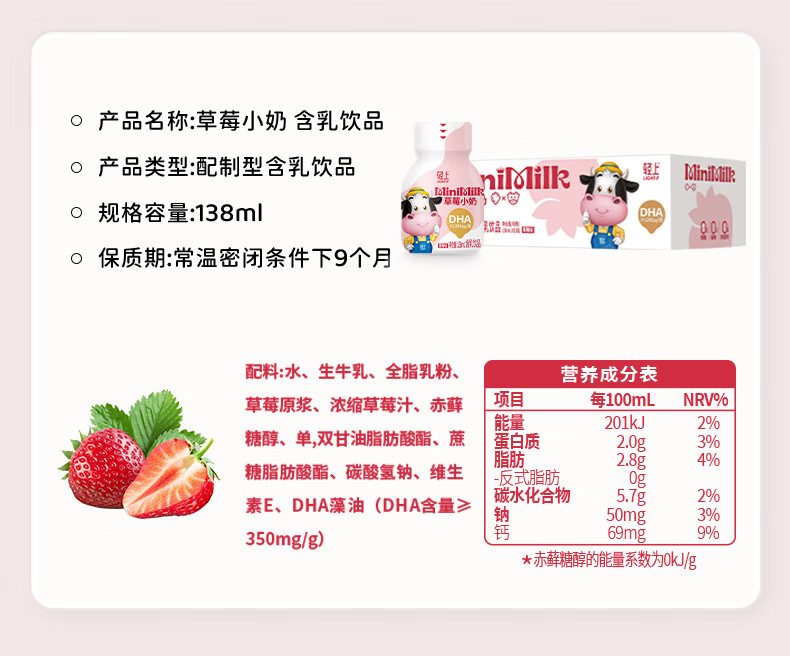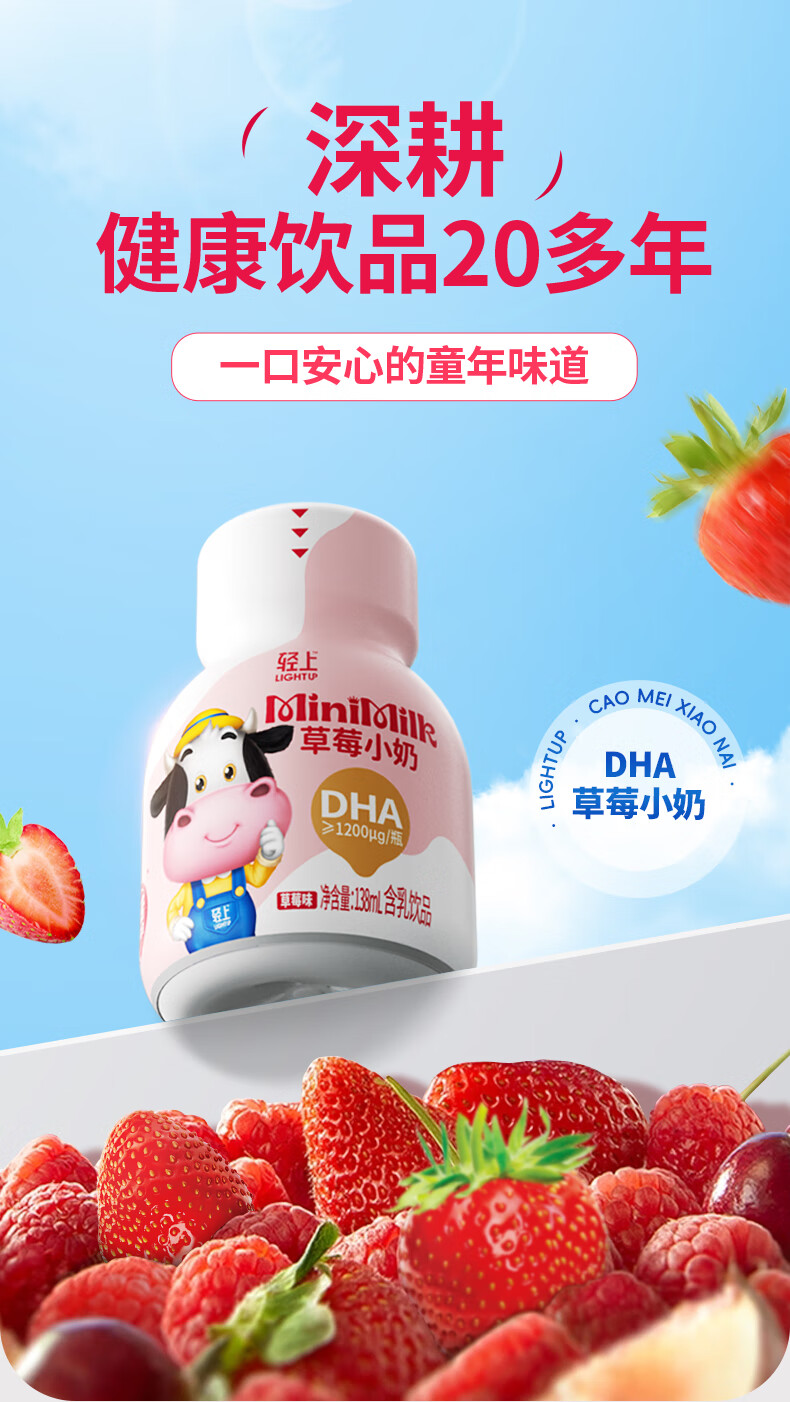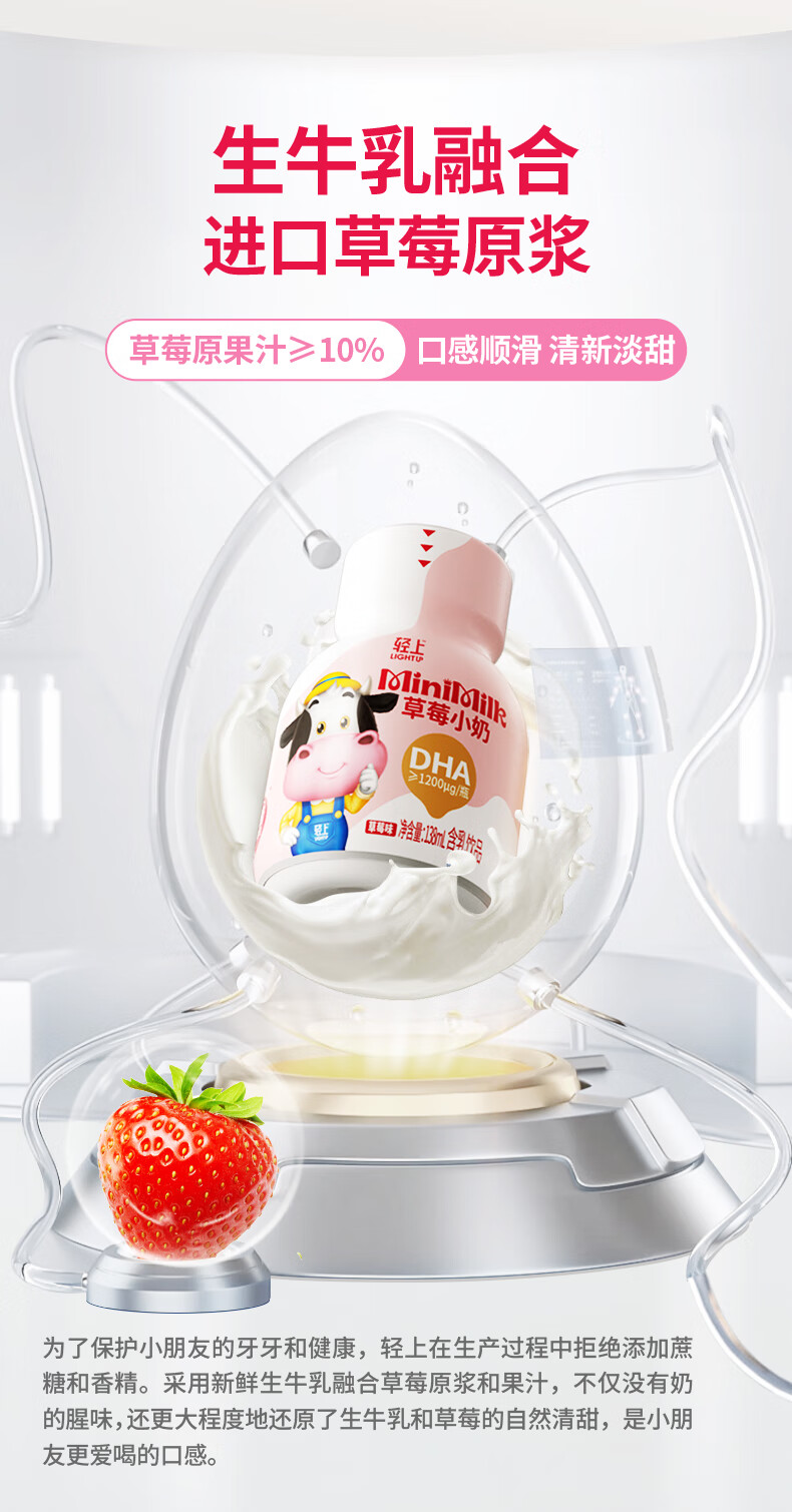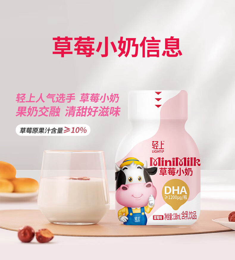 商品名称:轻上儿童生牛乳草莓味138ml*15瓶/箱(单位:箱)