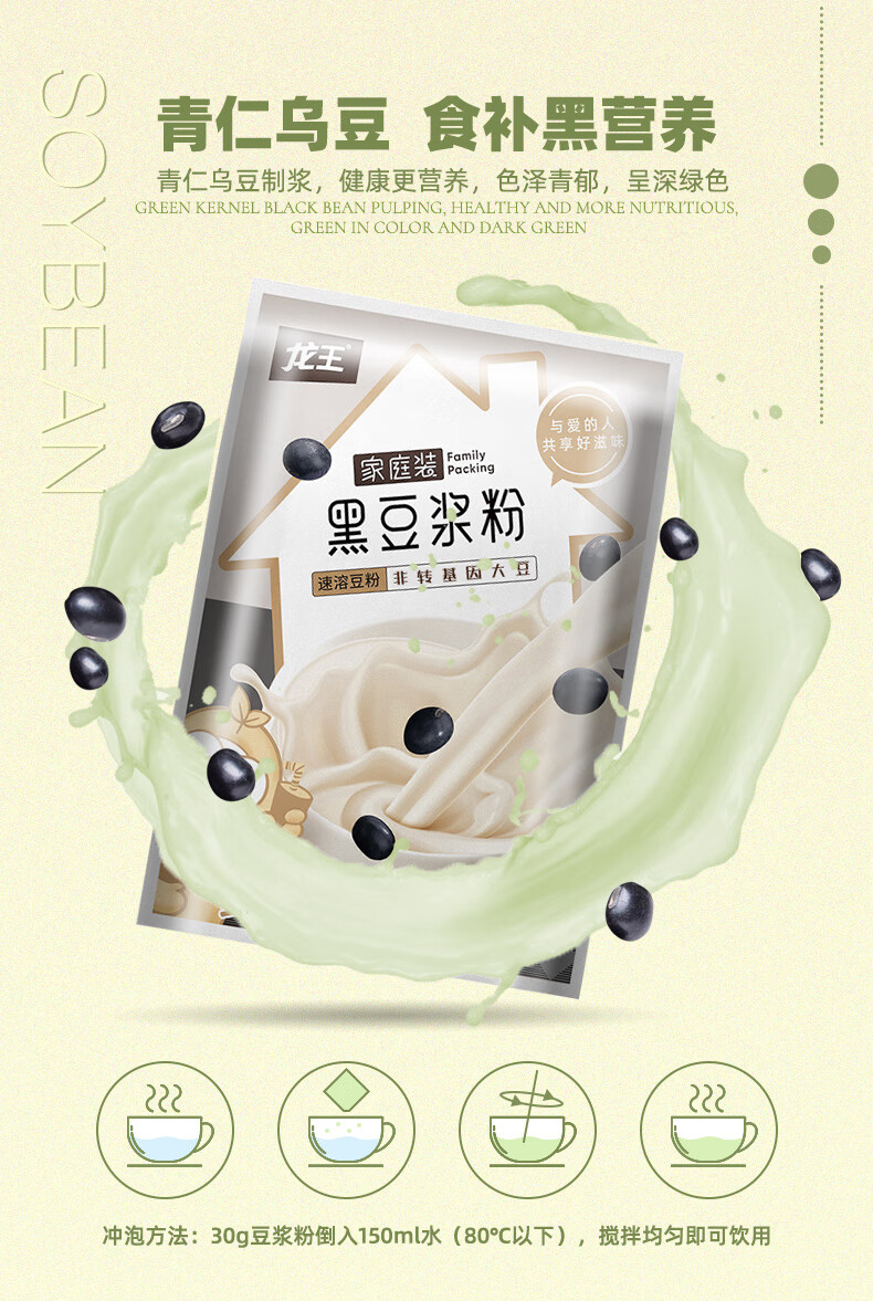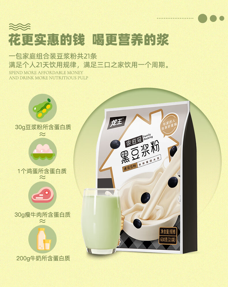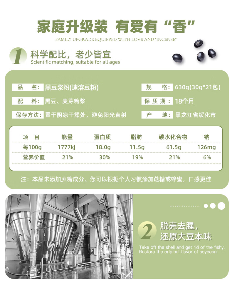 商品名称:家庭装黑豆豆浆粉630g/袋(单位:袋)
