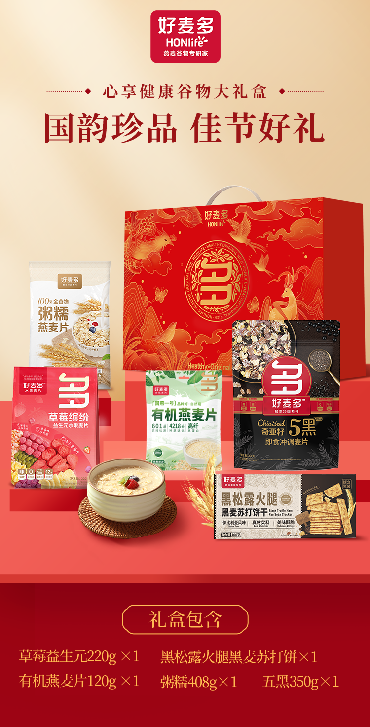 商品名称:好麦多 心享健康谷物大礼盒1198g(单位:盒)