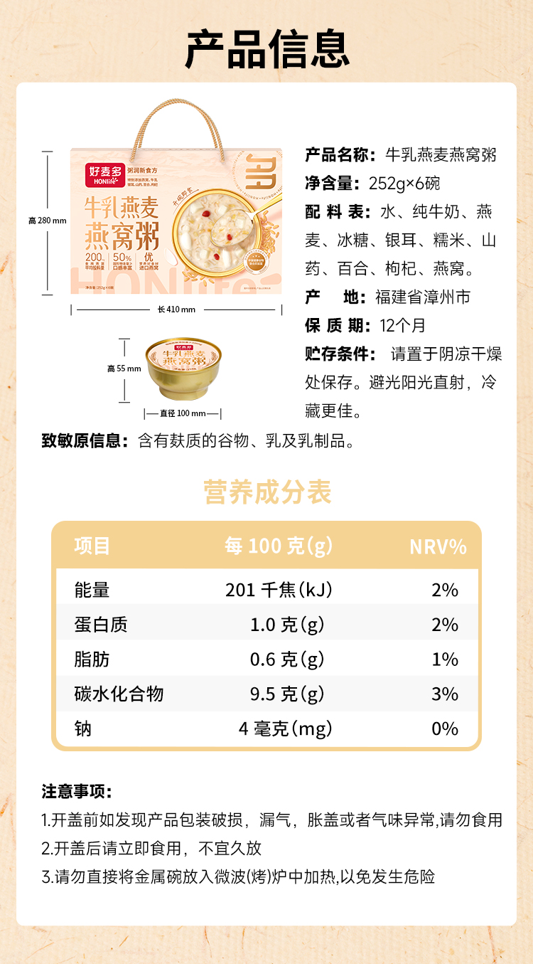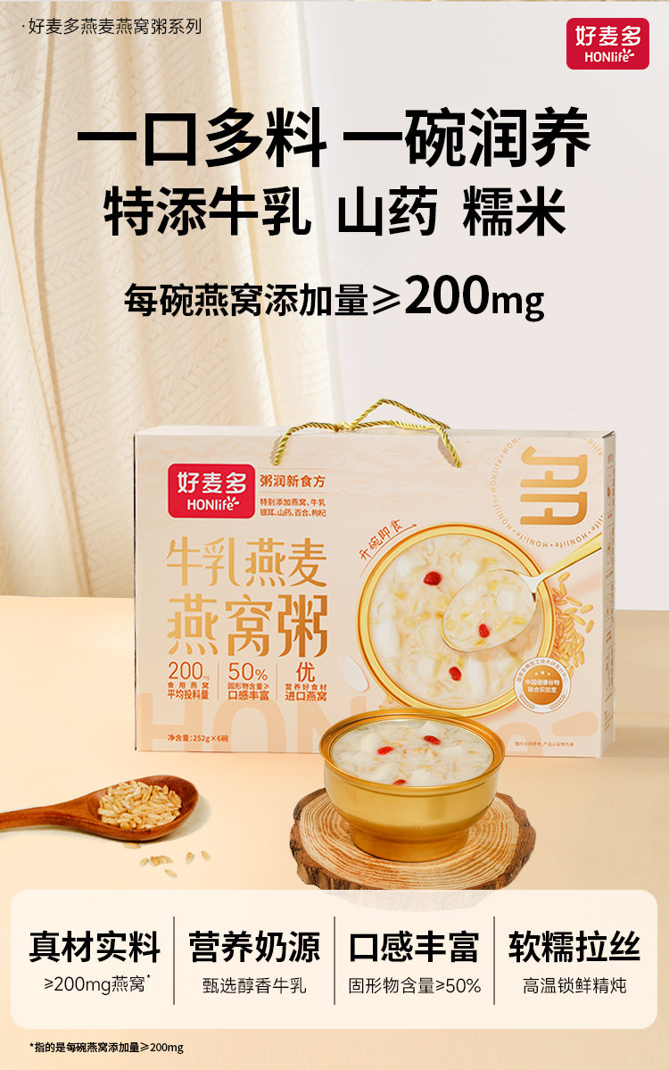商品名称:好麦多牛初乳燕麦燕窝粥1510g(单位:盒)