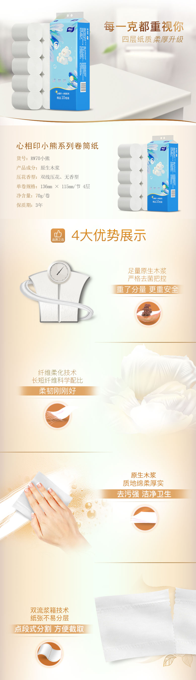商品名称:心相印RW70四层无芯卷纸小熊x70克x10卷/提 6903244962391 (单位:提)