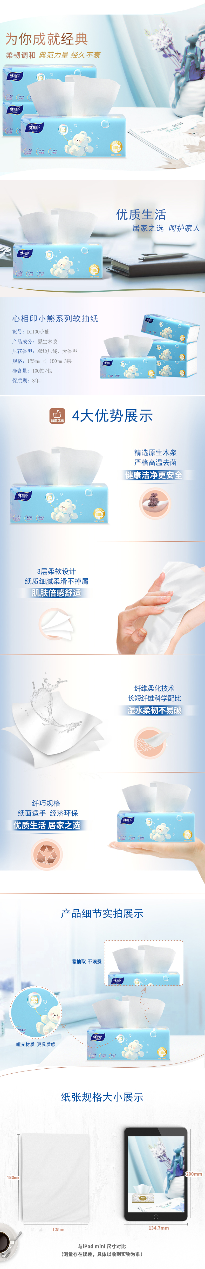商品名称:心相印DT100小熊100抽3包/提 6903244962353 (单位:提)