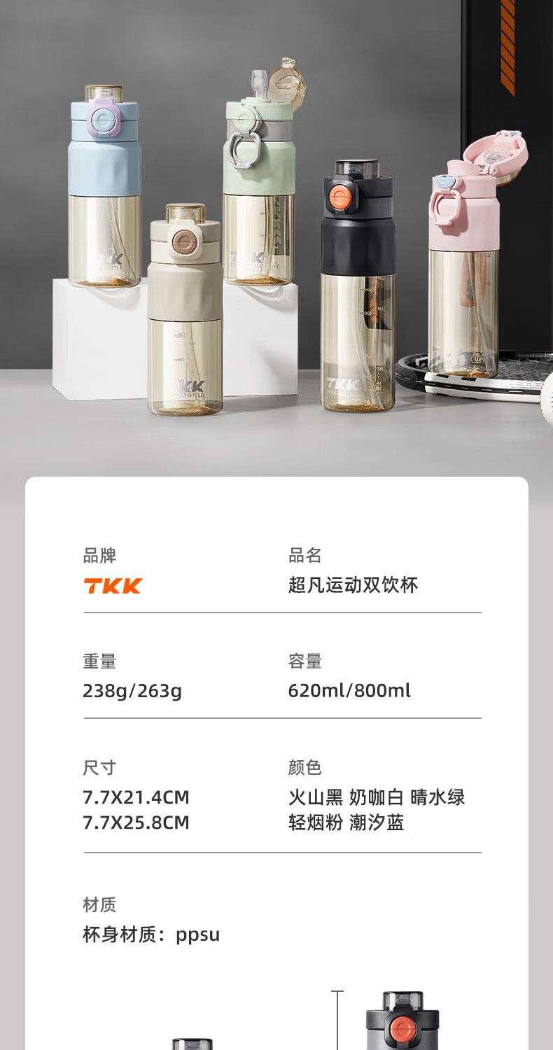 商品名称:TKK 1030 白色 620ml 超凡双饮水杯(单位:个)
