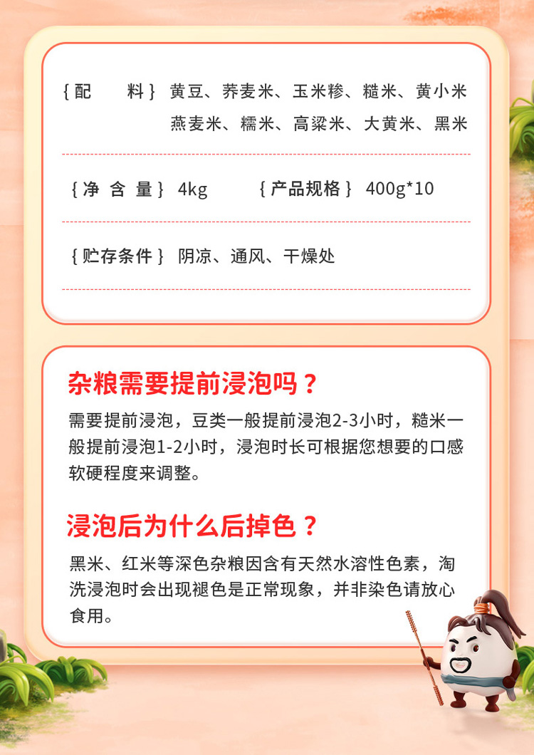 商品名称:十月稻田 五谷杂粮4kg/盒