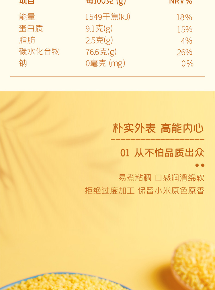 商品名称:十月稻田磨米世家内蒙古黄小米1kg/袋