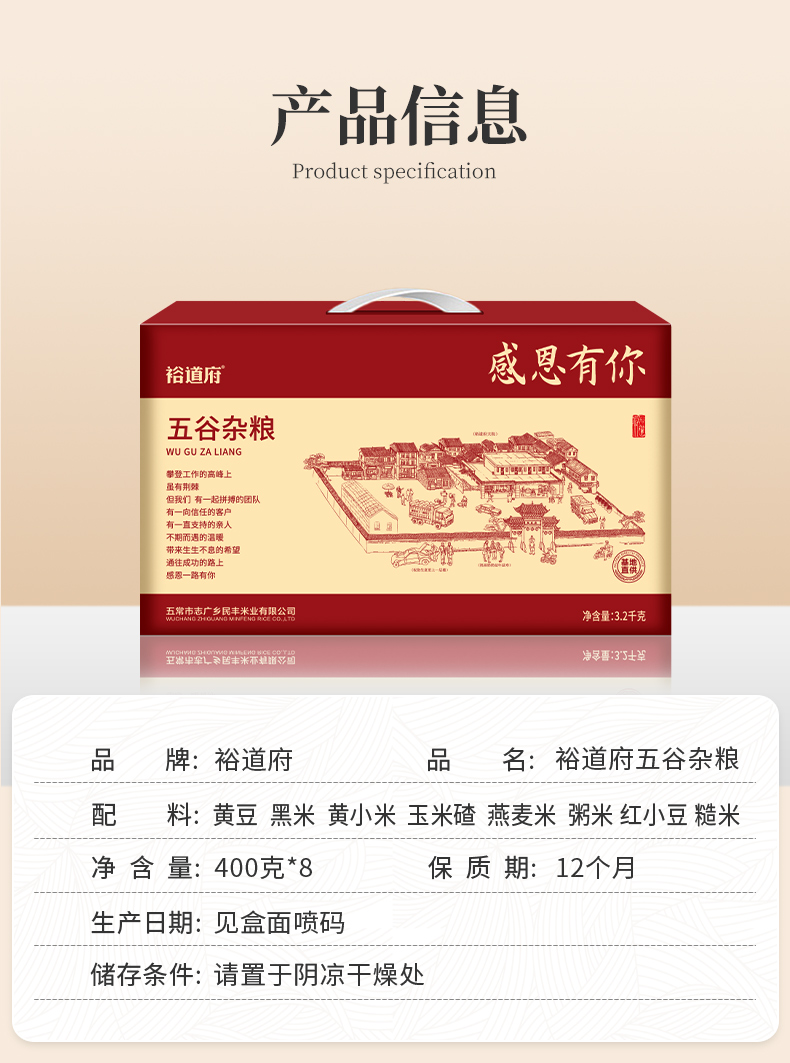 商品名称:裕道府 五谷杂粮礼盒 3.2kg(单位:盒)