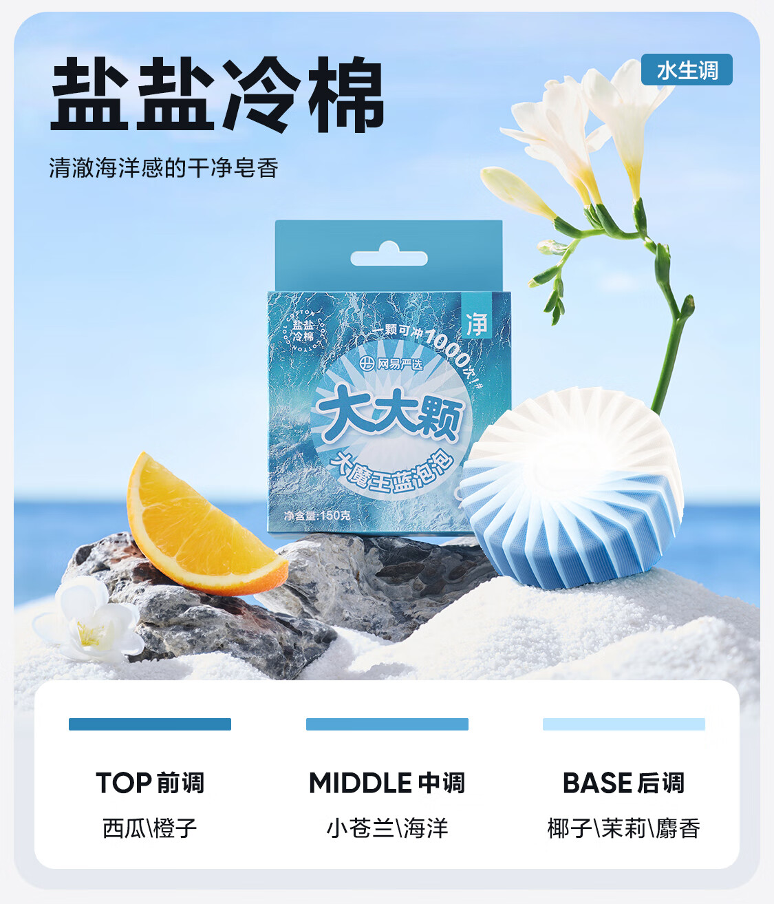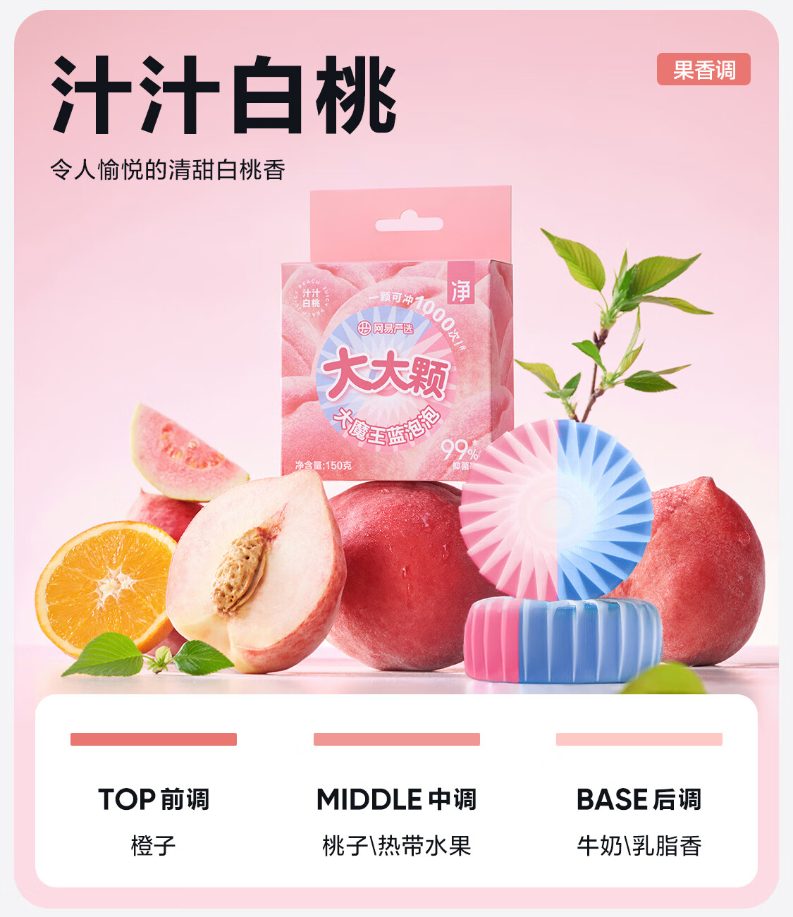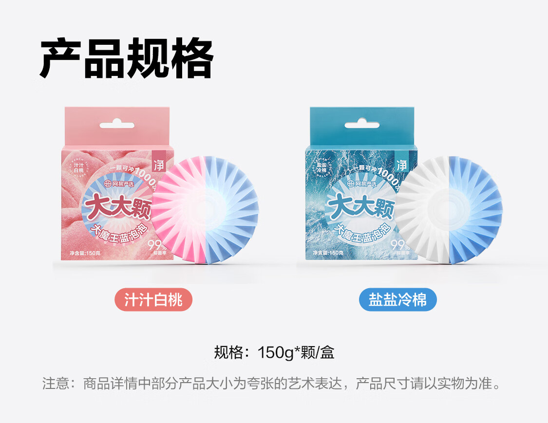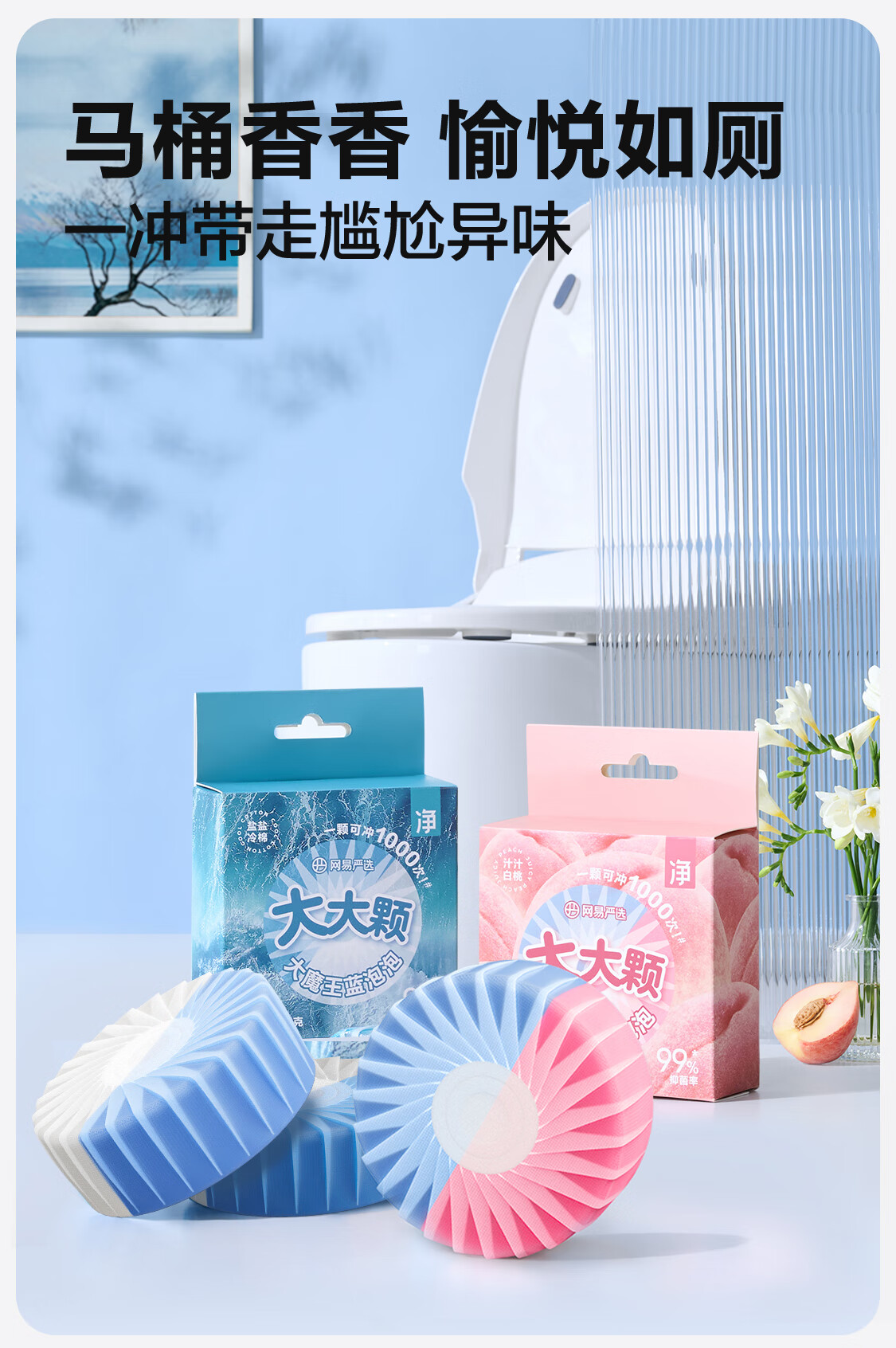商品名称:网易严选 大大颗大魔王蓝泡泡洁厕剂 汁汁白桃2盒+盐盐冷棉2盒
