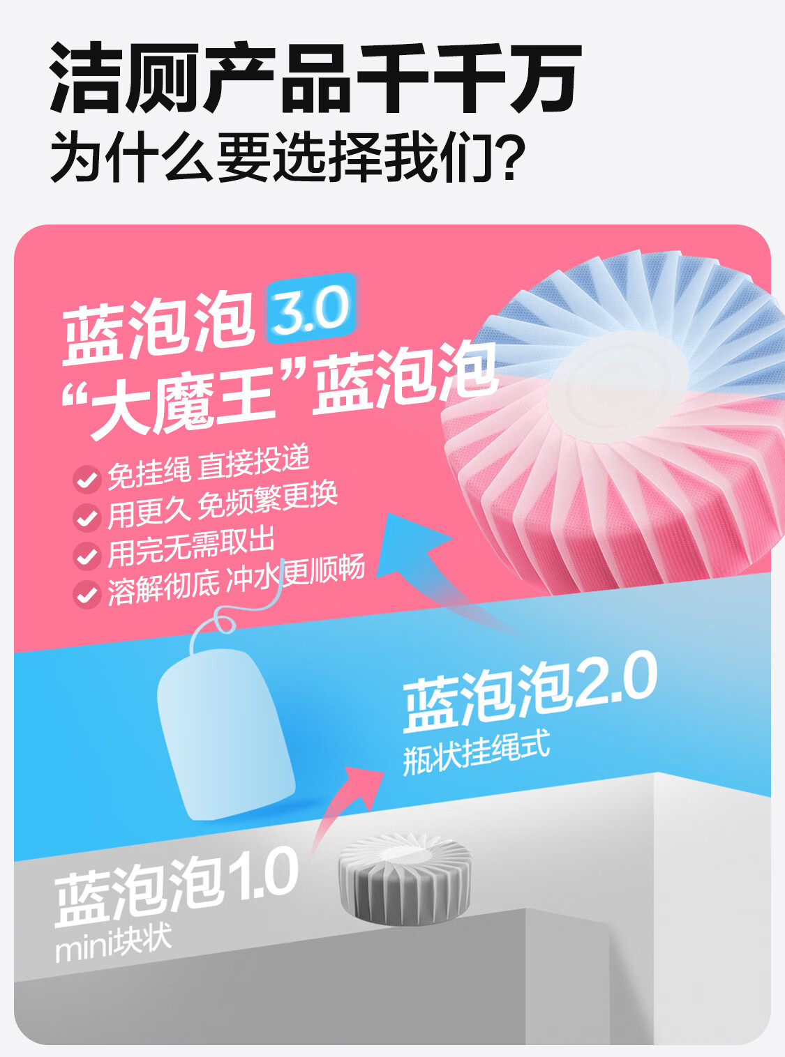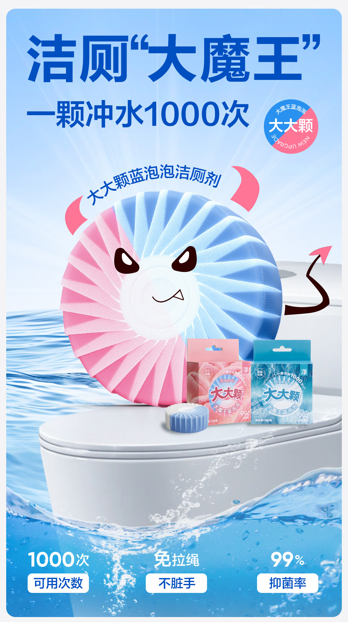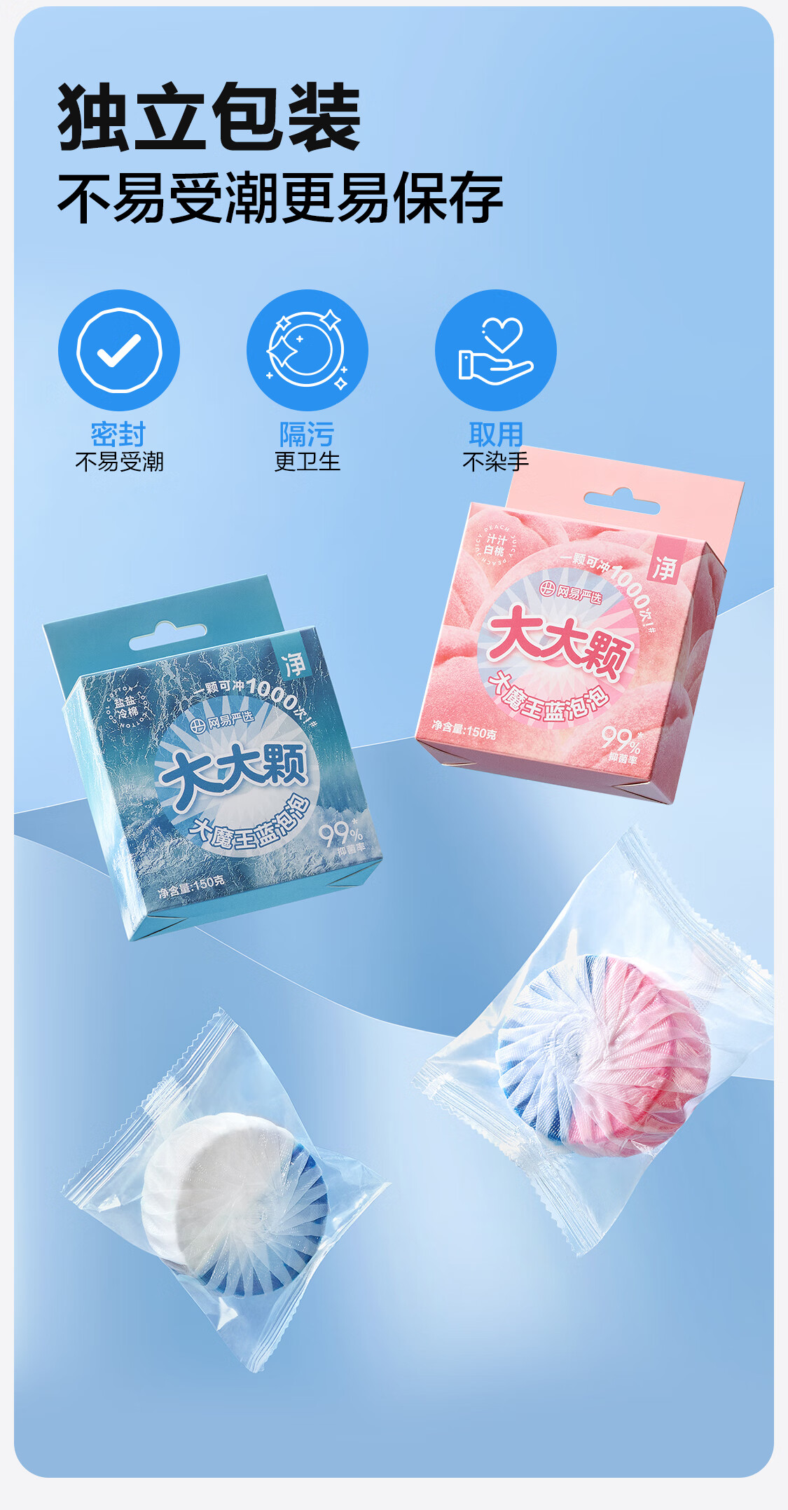 商品名称:网易严选 大大颗大魔王蓝泡泡洁厕剂 汁汁白桃2盒+盐盐冷棉2盒