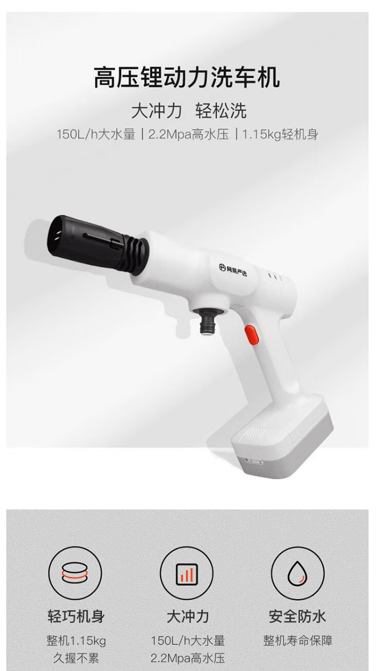 商品名称:网易严选无线便携高压洗车水枪 洗车机用水枪家用高压洗车喷枪洗车神器 无线高压洗车机