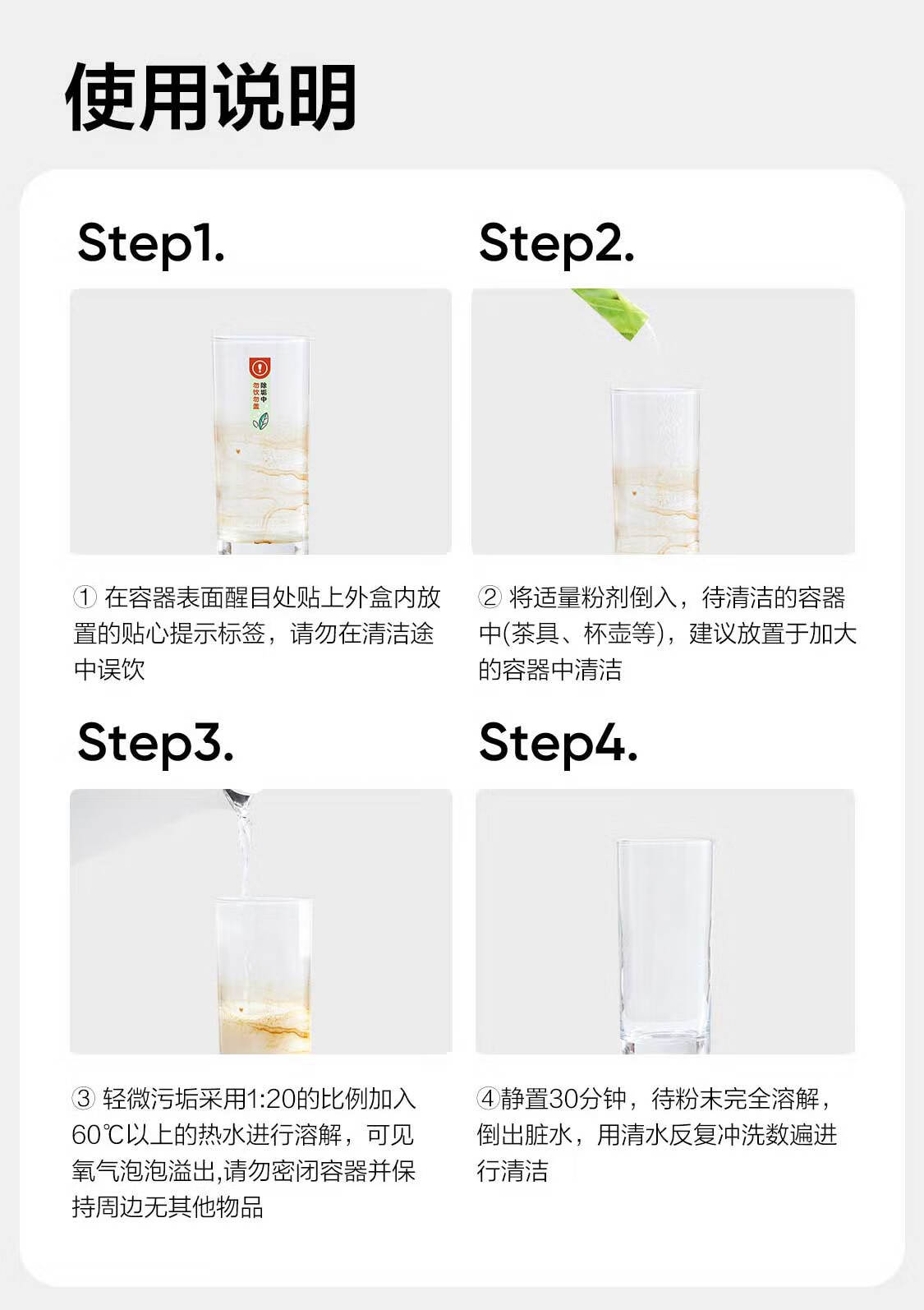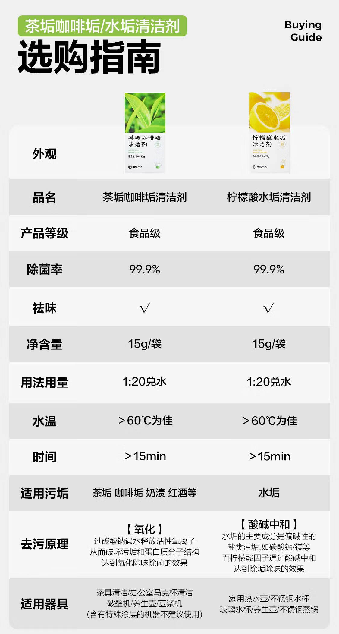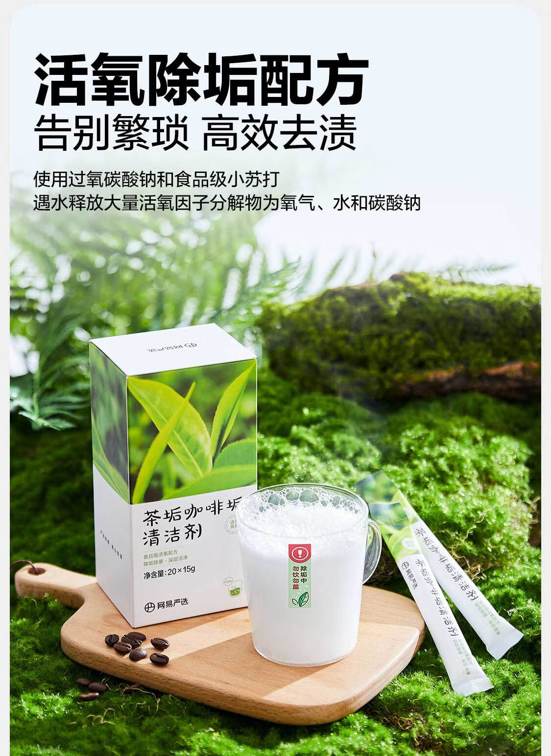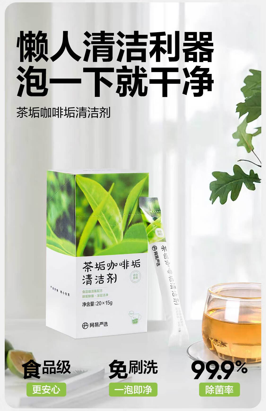 商品名称:网易严选 茶垢清洁剂 食品级茶杯茶具电水壶去污清洗剂 水垢咖啡垢清洁粉 【两盒600g】茶垢*1盒+水垢*1盒