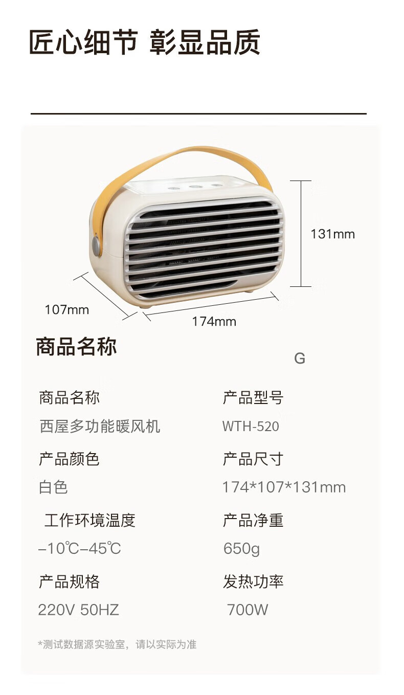 商品名称:西屋Westinghouse WTH-520 桌面取暖器 (单位:台)