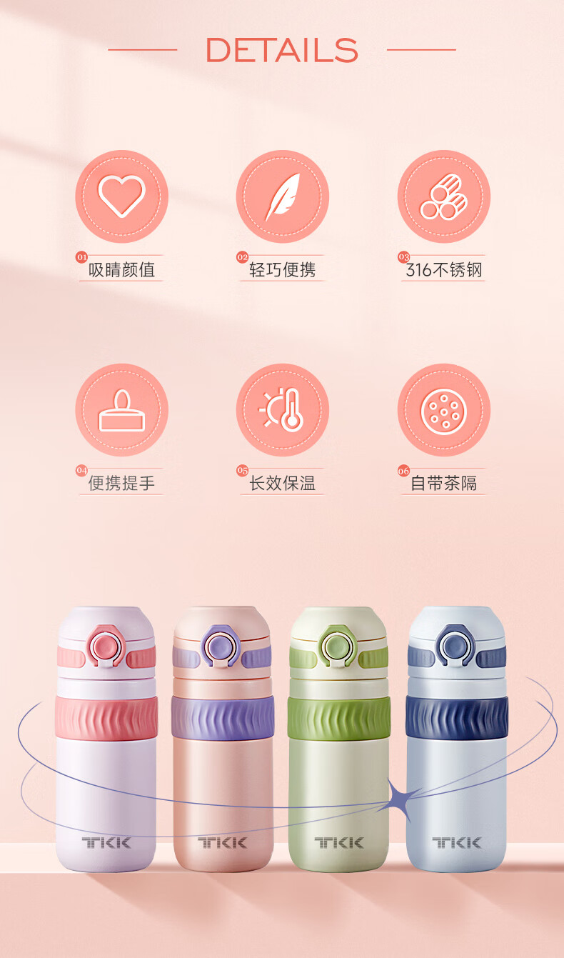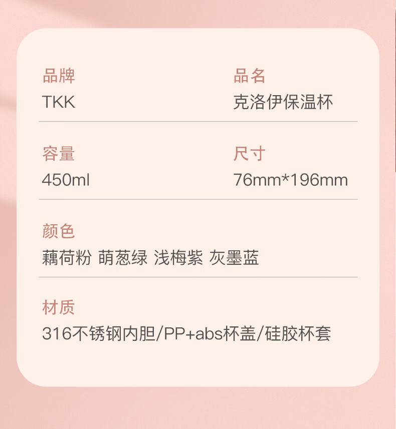 商品名称:TKK2006 藕荷粉 450ml 克洛伊保温杯(单位:个)