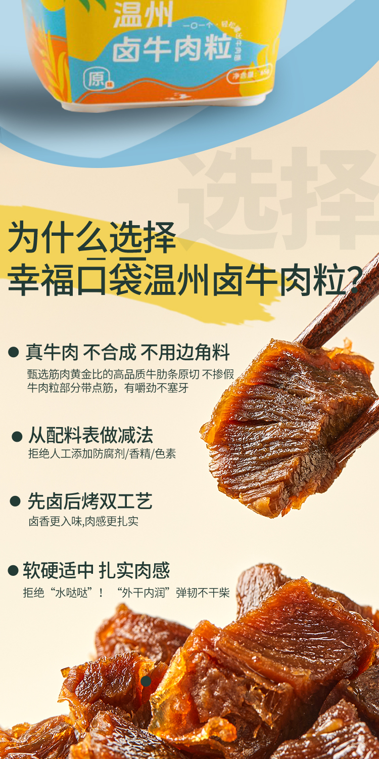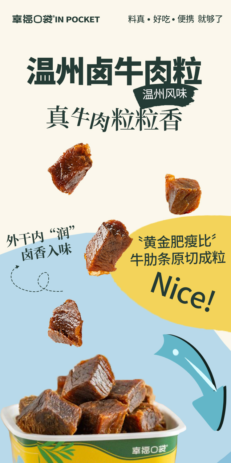 商品名称:幸福口袋温州卤牛肉粒原味195g*1盒(单位:盒)
