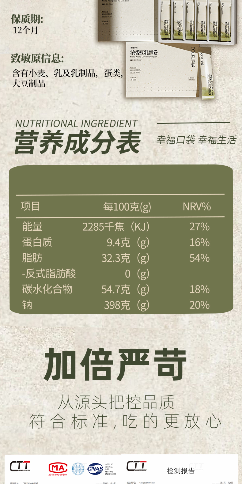 商品名称:幸福口袋浓香豆乳蛋卷204g*1盒(单位:盒)