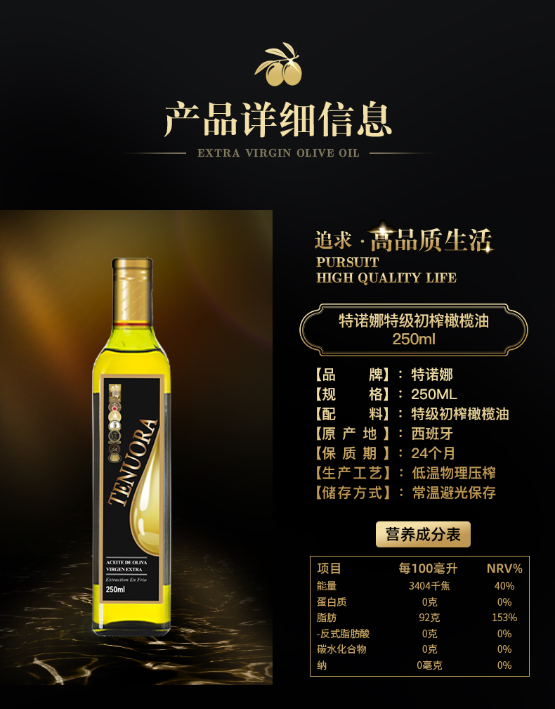 商品名称:特诺娜特级初榨橄榄油黑色精装礼盒250ml*2(单位:盒)
