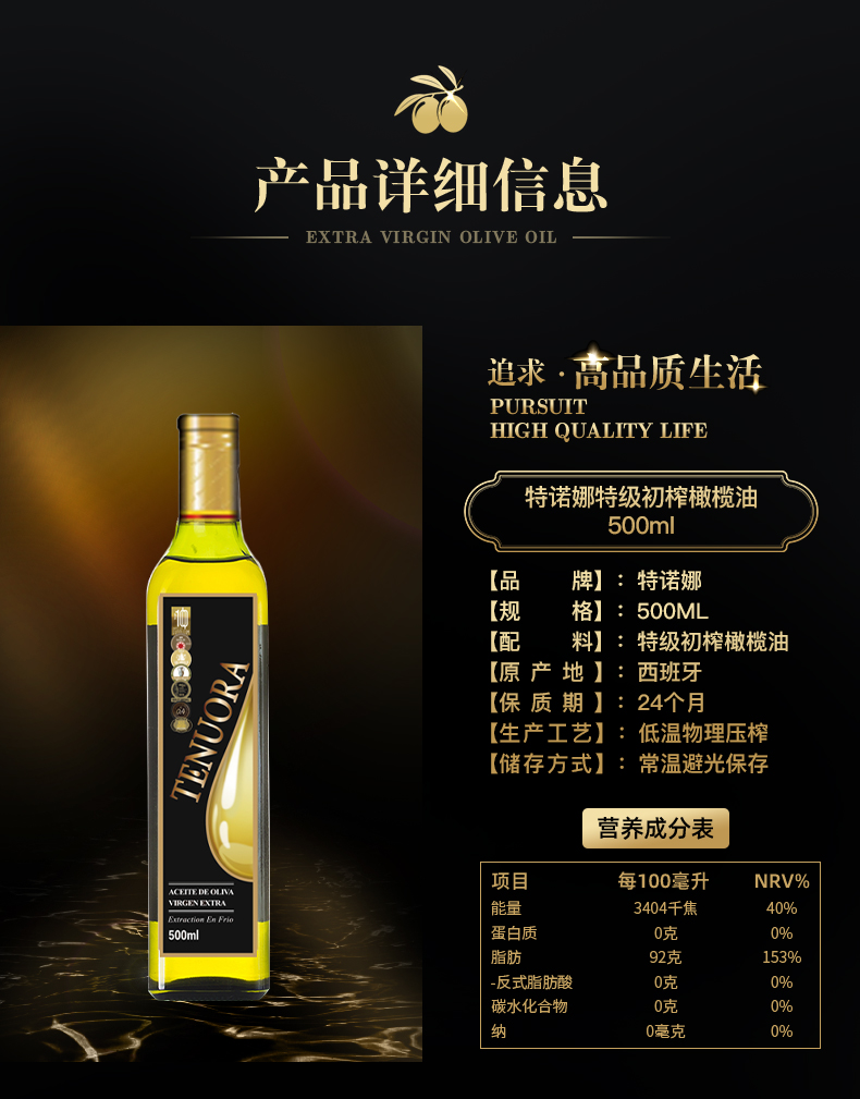 商品名称:特诺娜特级初榨橄榄油黑色精装礼盒500ml*2(单位:盒)
