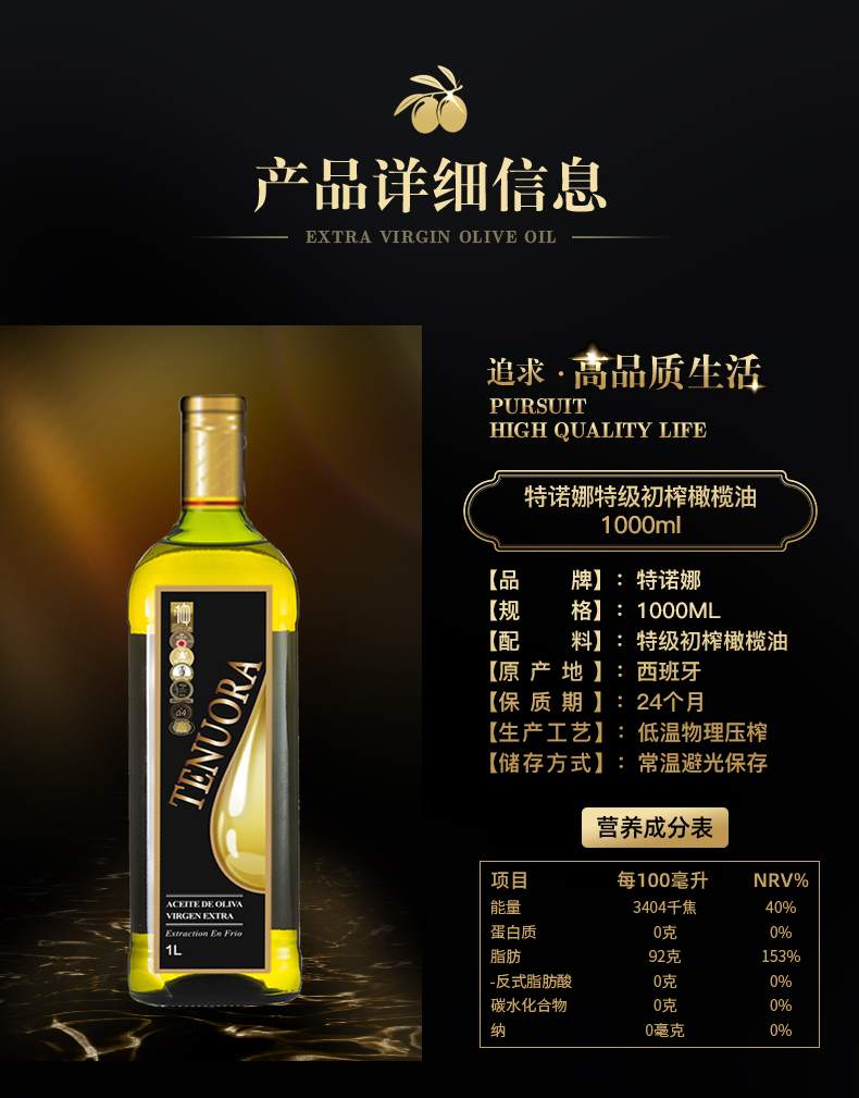 商品名称:特诺娜特级初榨橄榄油黑色精装礼盒1000ml*2(单位:盒)