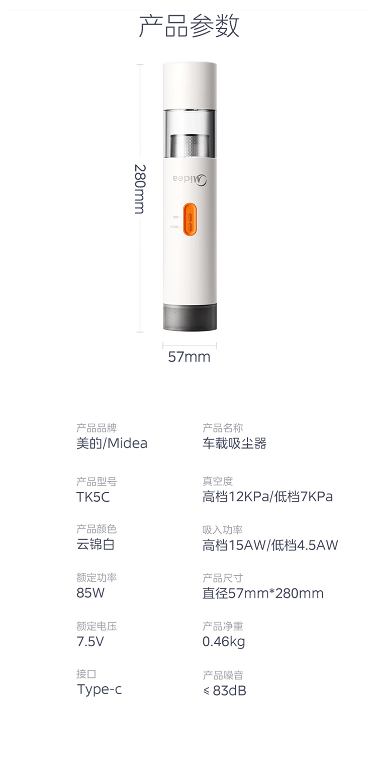 商品名称:美的(Midea)TK5C 吸尘器随手便携家用车载吸尘器