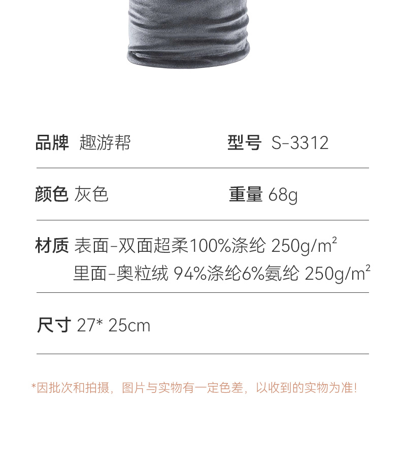 商品名称:趣游帮 S-3312 滑雪骑行防风加厚摇粒绒保暖围脖(单位:个)