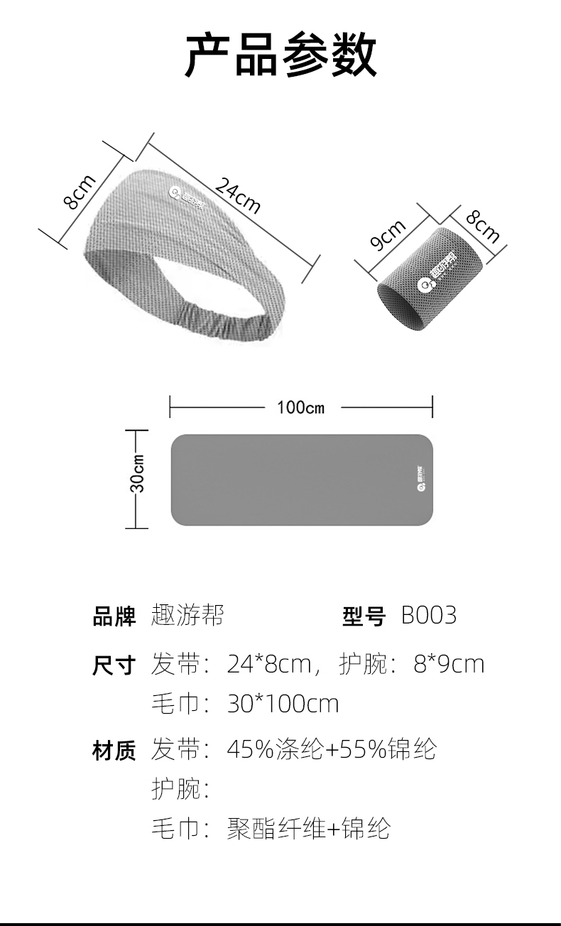 商品名称:趣游帮 B003 腕巾发带速干冰凉巾运动冷感3件套(单位:套)