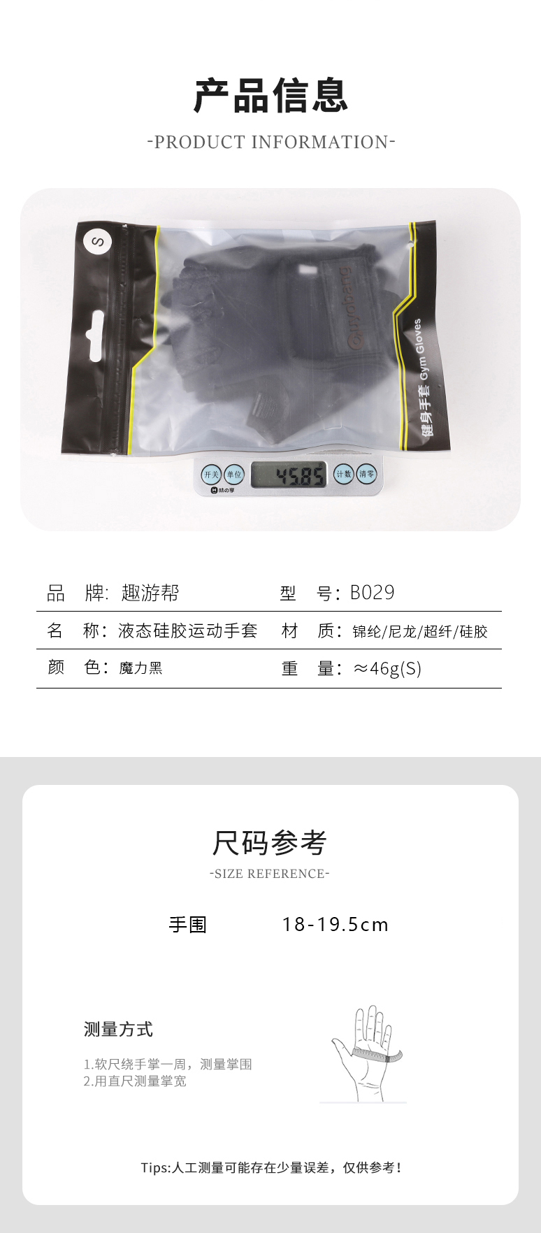 商品名称:趣游帮 B029液态硅胶运动健身手套(单位:副)