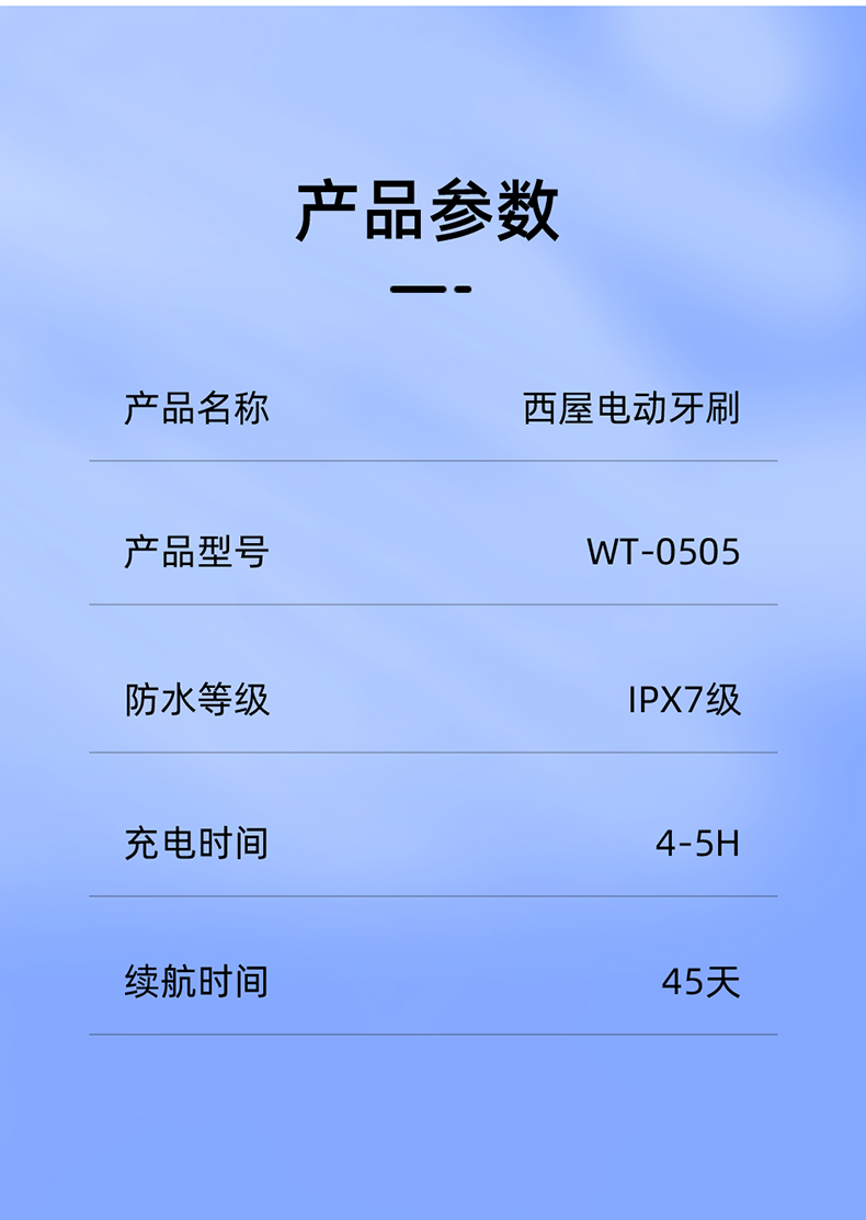 商品名称:西屋Westinghouse WT-0505 电动牙刷(单位:台)