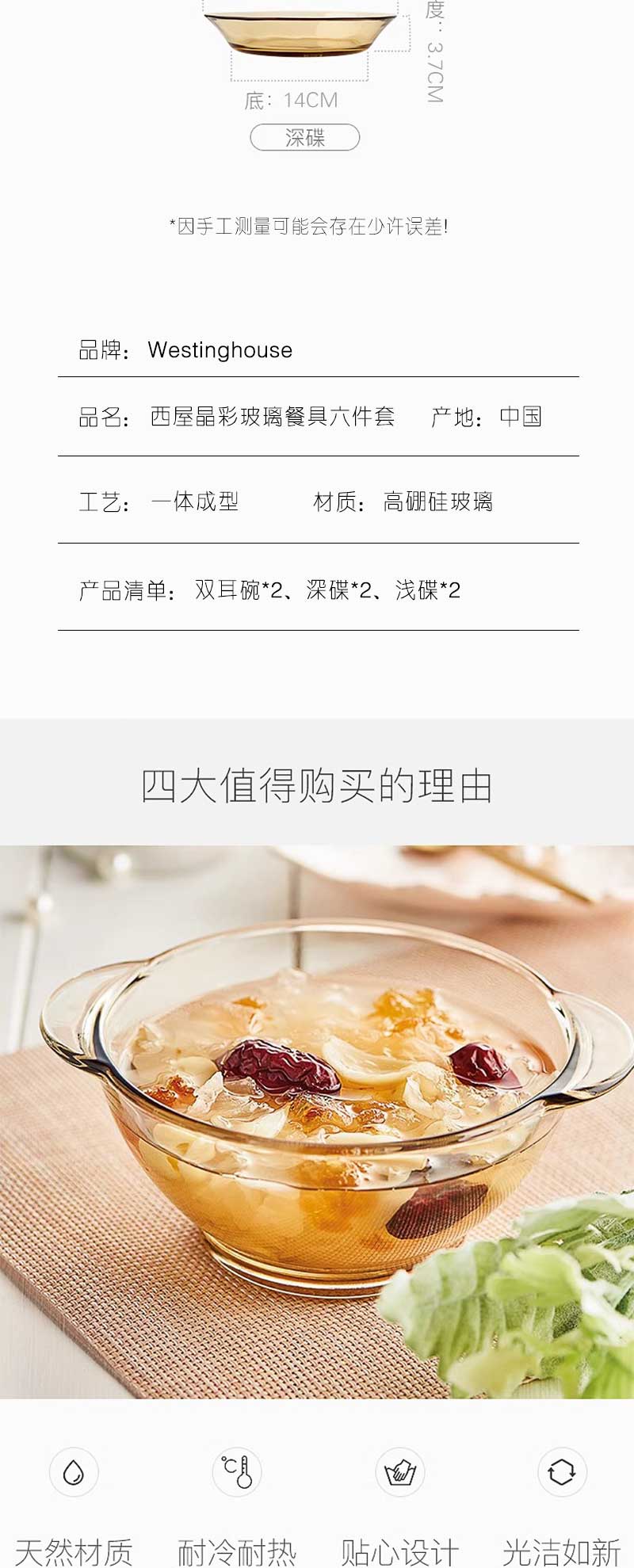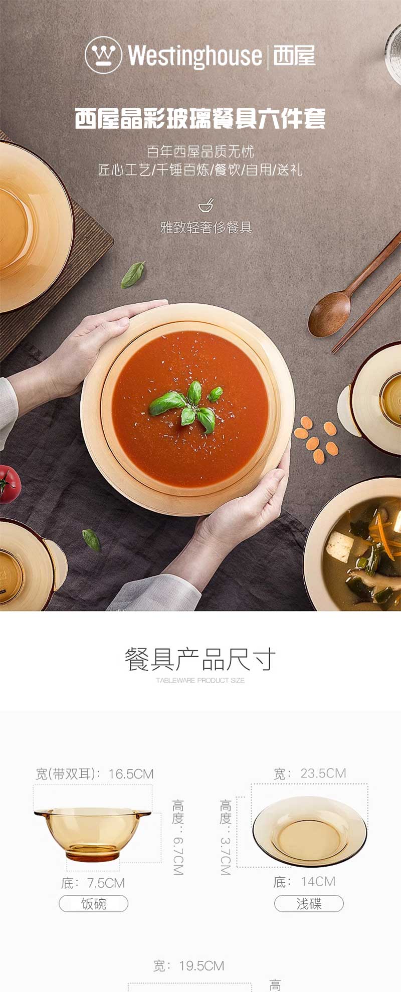 商品名称:西屋 晶彩玻璃餐具六件套 (单位:套)