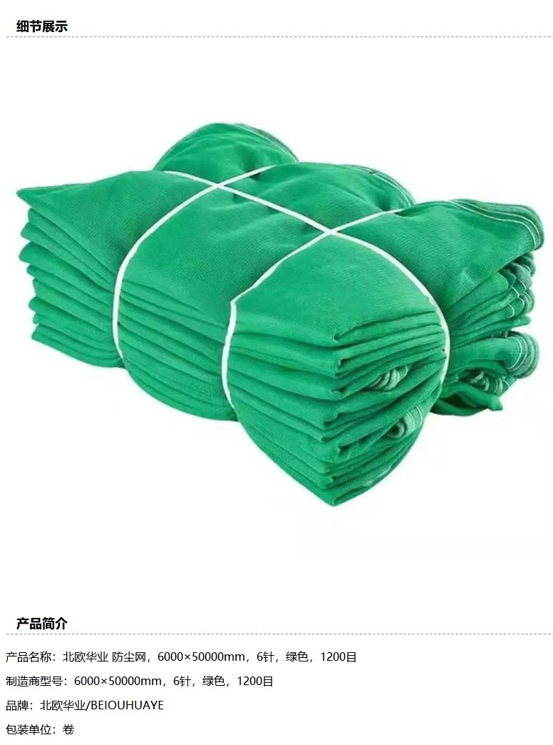 商品名称:北欧华业 防尘网,6000×50000mm,6针,绿色,1200目