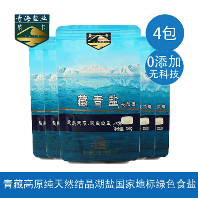 青海盐业茶卡天然湖盐藏青盐源自青藏高原净区天然结晶湖盐物理加工无添加国家地标绿色食盐(新疆西藏内蒙古不发货)320克*4包(无碘)/份 深蓝色
