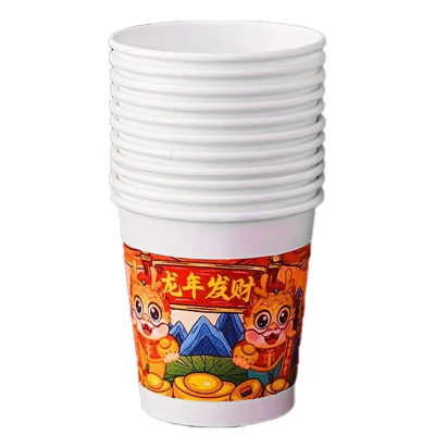 美之扣龙年纸杯一次性杯子家用加厚大容量茶水杯办公家用水杯 200ML50只装DFZB单位(只) 红色