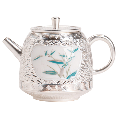 苏氏陶瓷(SUSHI CERAMICSJ0831鎏银品竹茶壶200ml非遗大师郑文强作品(单位:个) 银色
