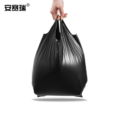 安赛瑞 700905 手提背心垃圾袋 酒店商用背心垃圾袋 80×90cm 50只装 厨房垃圾袋 黑色 黑色