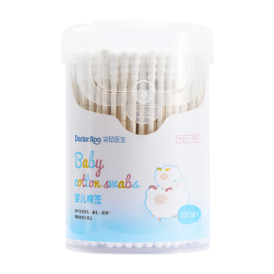 袋鼠医生婴儿棉签儿童清洁棉棒细轴新生儿宝宝鼻屎挖耳孔肚脐清洁双头两用 螺旋头+水滴头棉签200支