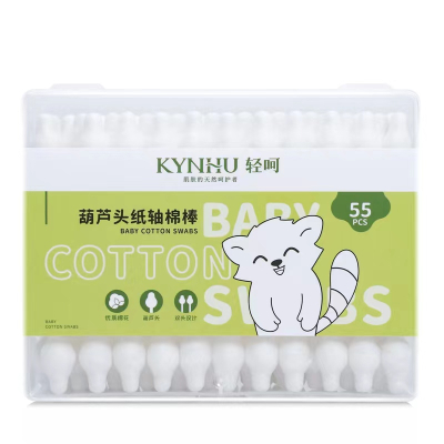 轻呵婴儿葫芦头棉棒,55支/筒,天然优质棉花、进口原纸 MB-55-PP 单位:筒 白色