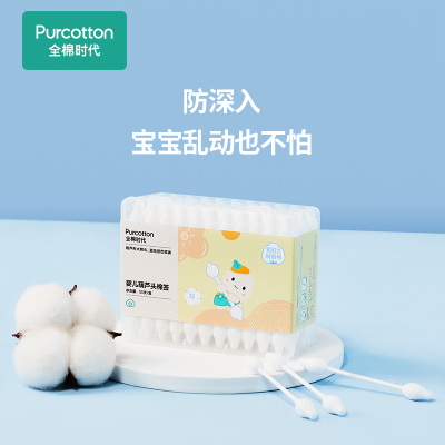 全棉时代婴童葫芦头棉签全棉防戳耳朵肚脐清洁55支/盒(单位:盒) 香槟黄