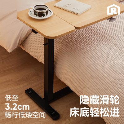 网易严选气杆升降桌床边桌电脑桌 沙发边几床上小桌子 C70胡桃木色-单侧旋转-滑轮可锁