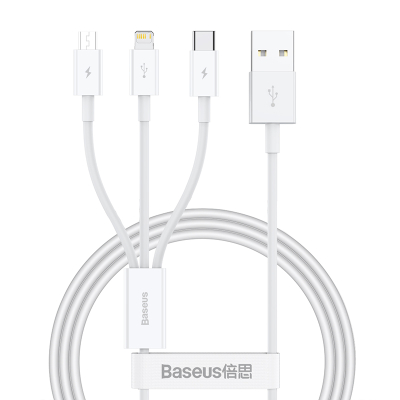 倍思 优胜系列 一拖三快充数据线 USB to M+L+C 3.5A 1m 单位:条 星光白