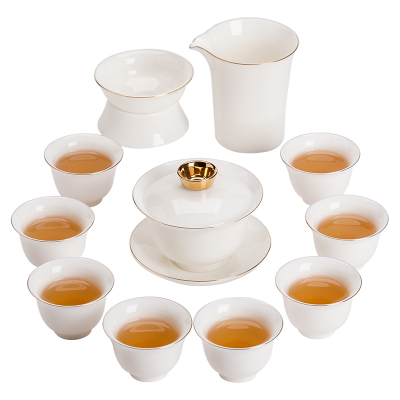 苏氏陶瓷(SUSHI CERAMICS)J0861整套茶具白瓷描金盖碗8杯礼盒装(单位:套) 白色
