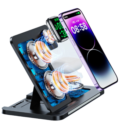 remax睿量 苹果三合一无线充电器22W快充支架适用于iPhone15/14/13ProMax手机 黑色
